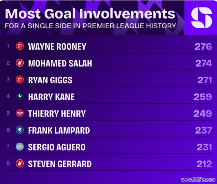 9月21日讯 Squawka统计了球员在单一球队加入 英超得分 的数量,并列出榜单, 网球新闻法甲直播萨拉赫加入 274球排名第二位, 西甲新闻网距离首位鲁尼仅差2球。