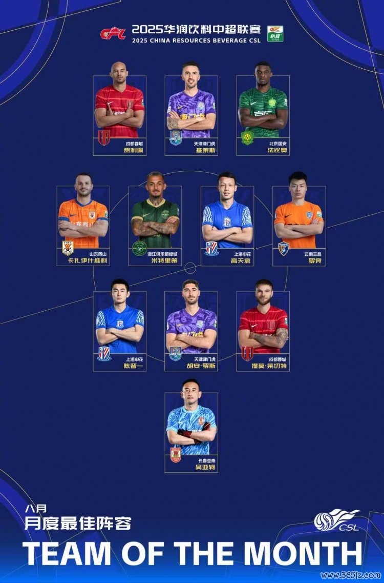 9月26日讯 中超官方公布8月最佳阵形 ,费利佩、瓦科在列,陈晋一、高天意、罗竞、吴亚轲入围,蓉城、申花、津门虎各有2位球员。