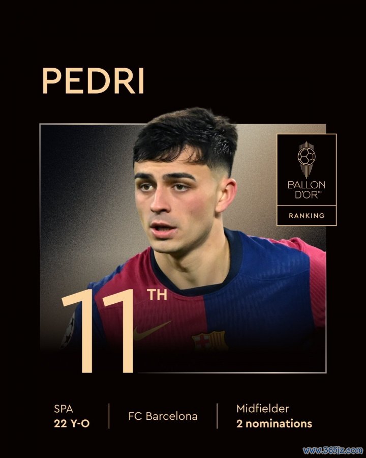 佩德里今年金球奖排名第11名, 西甲新闻网足球直播追赶 第十的努诺-门德斯47分。
