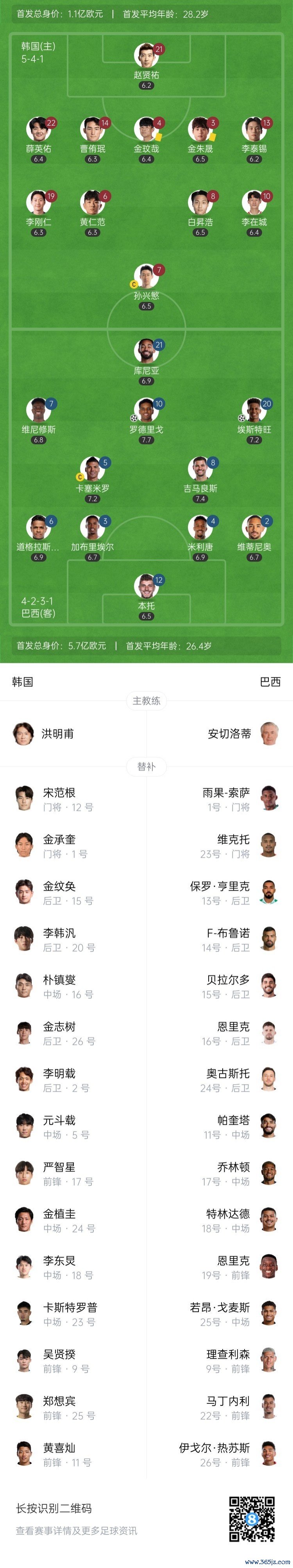 第41分钟,维尼修斯左路回敲,罗德里戈故意一漏,卡塞米罗不停球再做给罗德里戈,开启运动人生罗德里戈危险区域 内调整到右脚兜射破门!巴西2-0领跑 韩国↓