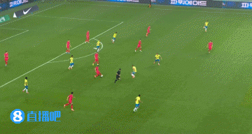 第13分钟,吉马良斯送出致命手术刀传送球 ,埃斯特旺斜插小危险区域 内推射破门!巴西1-0领跑 韩国↓
