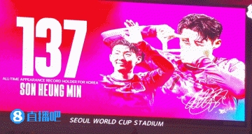 第9分钟,五大联赛现场大屏幕显示,孙兴慜以137次出场打破韩国国家队出场记录 ↓
