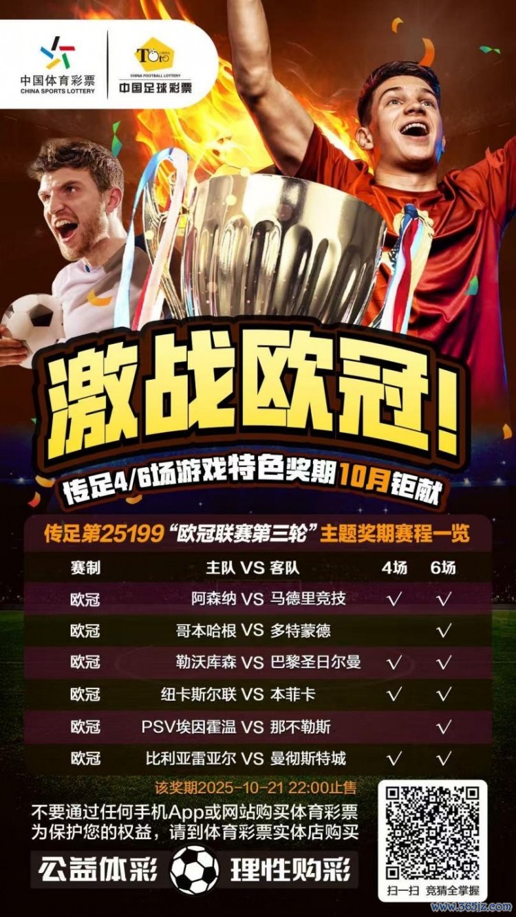 第25199期传足4/6场游戏特色奖期已经于2025年10月19日20:00开售,将于2025年10月21日22:00停售英格兰足球超级联赛nba,并于10月22日开奖,其中阿森纳VS马德里竞赛 、勒沃库森VS巴黎圣日尔曼、纽卡斯尔联VS本菲卡和比利亚雷亚尔VS曼彻斯特城为4场得分 游戏竞猜赛事。