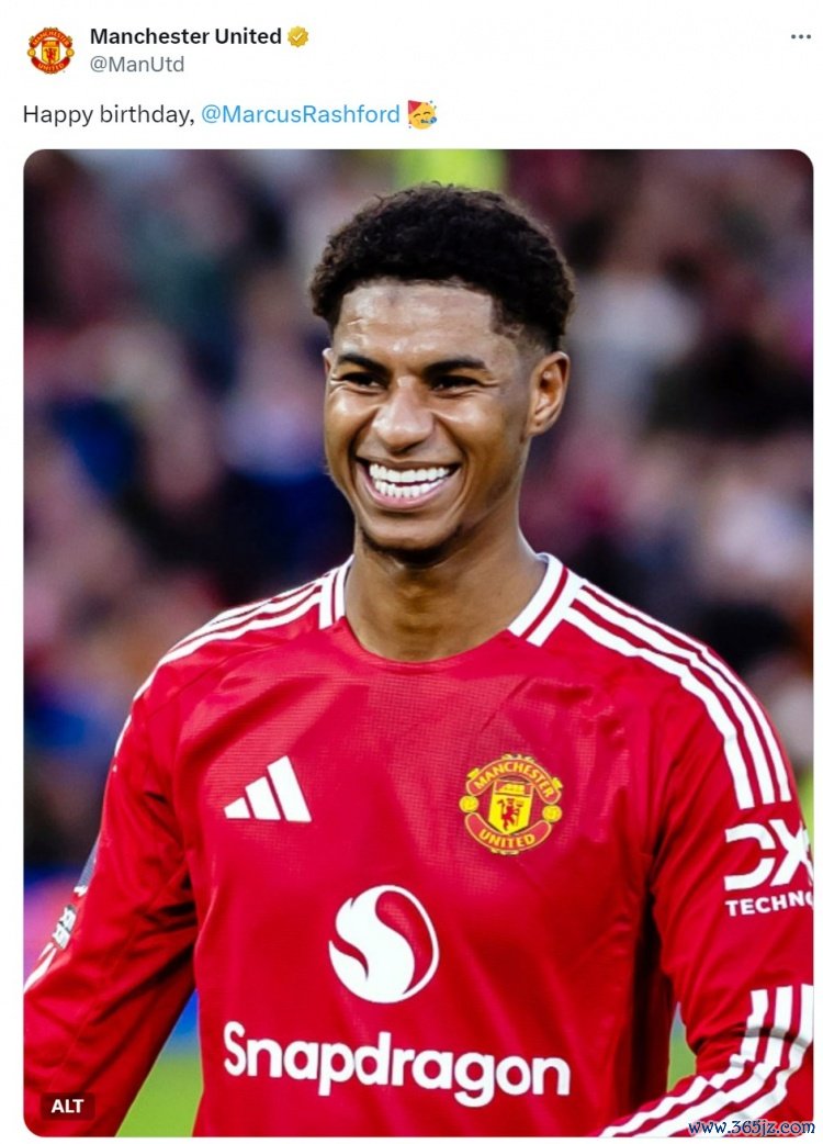 10月31日讯 今天是拉什福德的28岁生日,曼联为他送上祝福。