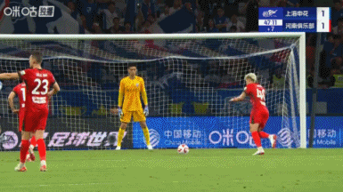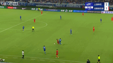 上半场加时补赛7分钟,半场结束,上海申花暂2-1河南。