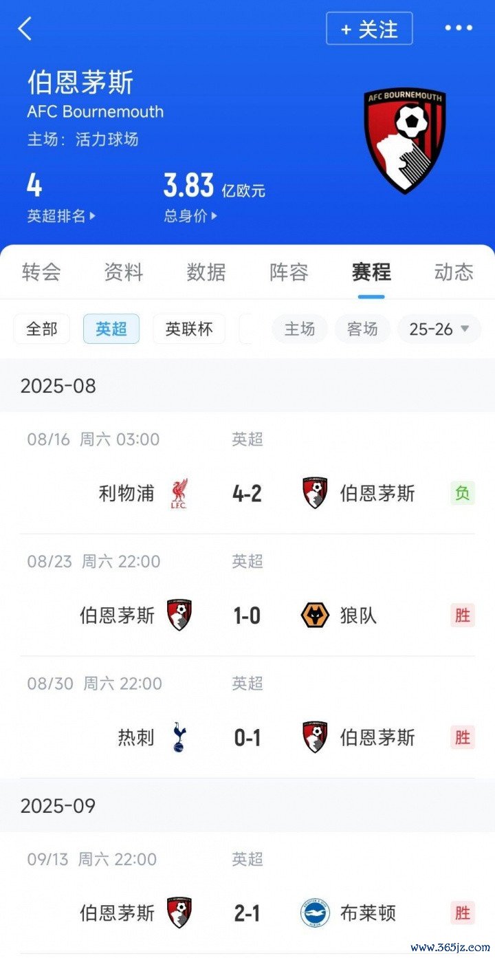 直播吧09月14日讯英超第4轮,伯恩茅斯2-1击败布莱顿,豪取英超三连胜,升至积分榜第4位。