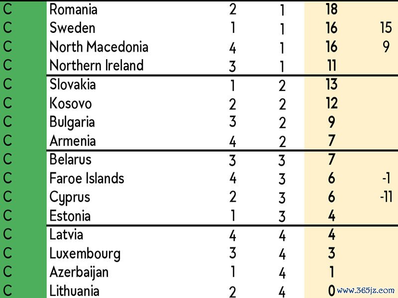 两场不胜,将瑞典推入了绝境,目前追赶 榜首瑞士5分,积分是小组最少的,五大联赛仅因少丢一球的优势而力压斯洛文尼亚,排名第三。这是一个只有4支球队的小组,头名可以直接晋级下一轮 世界杯赛 ,第二名落入欧洲区附加赛,从现在情况来看,瑞典想要争夺小组第一,机会已经很渺茫,附加赛是最后的机会。