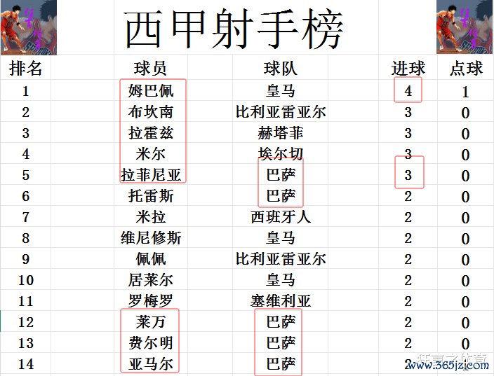 射手榜方面,姆巴佩4球继续领跑,拉菲尼亚连进两球后,追上米尔,布坎南等人3球并列第2。同样连进两球的莱万,费尔明则是追上亚马尔,维尼修斯等人今晚足球比赛赛事,2球挤入前十。